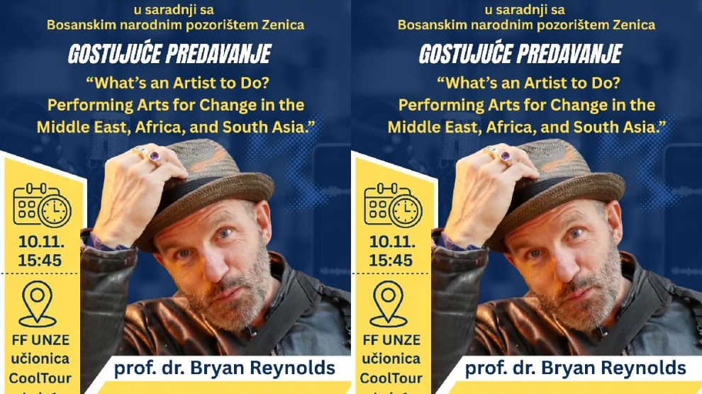 U organizaciji Filozofskog fakulteta Univerziteta u Zenici i Katedre za kulturu i turizam, a u saradnji sa Bosanskim narodnim pozorištem Zenica, biće održano gostujuće predavanje uglednog američkog teatrologa, teoretičara i pozorišnog umjetnika prof. dr. Bryana Reynoldsa sa University of...