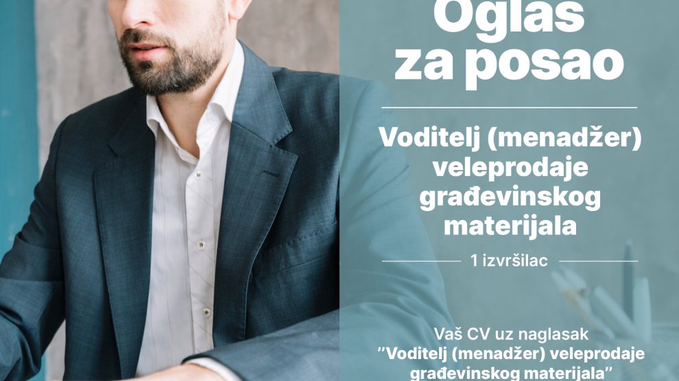 Almy d.o.o. Zenica objavljuje konkurs za prijem u radni odnos: Pozicija: Voditelj (Menadžer) veleprodaje građevinskog materijala Lokacija: Zenica Broj izvršilaca: 1 Uslovi: – VSS; – Obavezno radno iskustvo, poželjno na istim ili sličnim poslovima; – Kreativnost i...