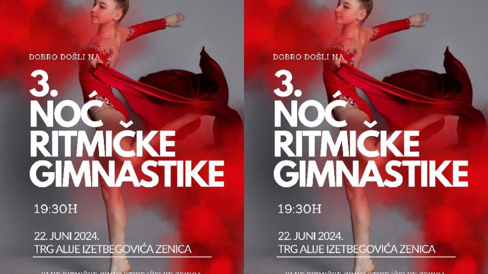 Predstojeće subote u Zenici će biti održana 3. Noć ritmičke gimnastike koju organizuje Klub ritmičke gimnastike (KRG) “Čelik” Zenica u čast njihovih vrijednih djevojčica. Završna priredba Kluba održat će se u subotu 22. juna 2024. godine na Trgu Alije Izetbegovića sa početkom u 19,30 sati...