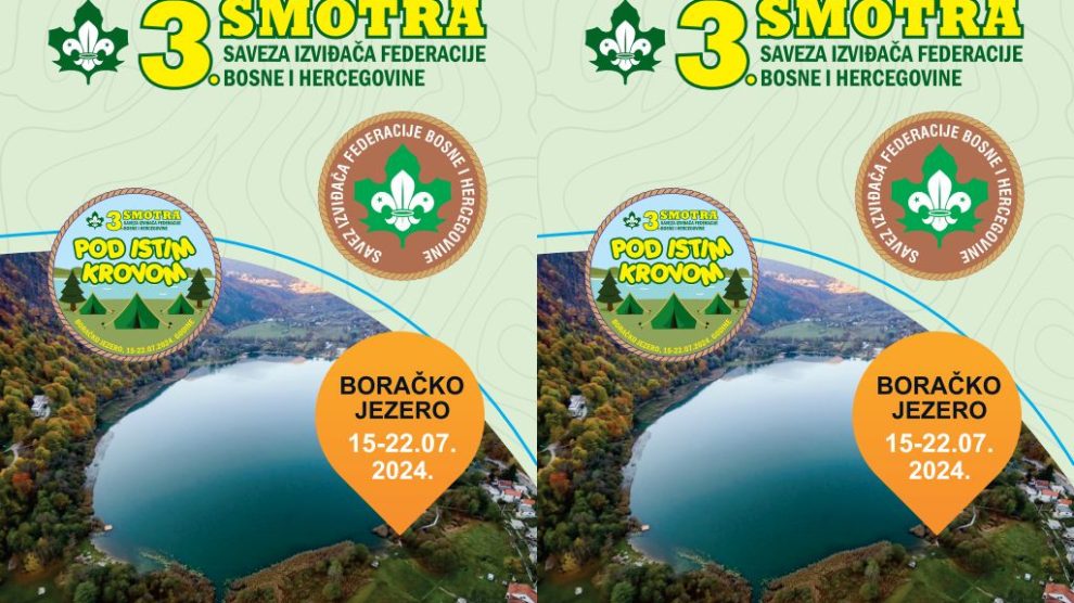 Predstavljamo najveći događaj za mlade ovog ljeta na Boračkom jezeru, 3.Smotru Saveza Izviđača Federacije Bosne i Hercegovine – “POD ISTIM KROVOM”. Smotra Saveza Izviđača Federacije BiH (SIFBIH), okuplja preko 1000 učesnika i gostiju, iz više od 30 gradova i 6 zemalja...