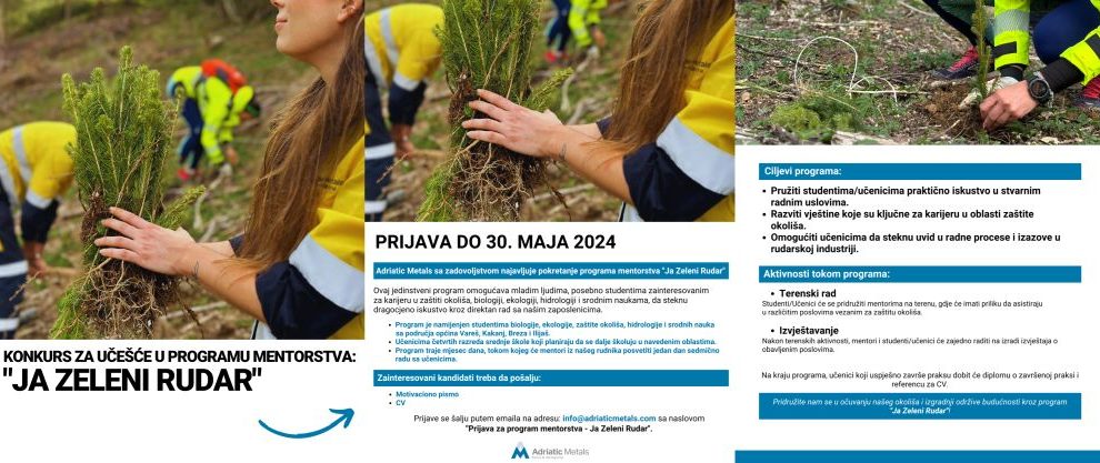 Adriatic Metals BH d.o.o., lider savremenog i održivog rudarenja u regiji Jugoistočne Evrope, objavio je danas poziv za prijave na Konkurs pod nazivom “Ja Zeleni Rudar”. Radi se o jedinstvenom programu mentorstva koji omogućava mladim ljudima, posebno studentima i...