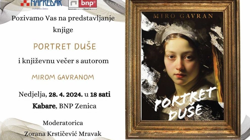 U organizaciji Bosanskog narodnog pozorišta Zenica i Hrvatskog kulturnog društva Napredak Zenica, u nedjelju, 28. aprila u Bosanskom narodnom pozorištu Zenica bit će upriličena promocija knjige Mire Gavrana „Portret duše“ u 18 sati na Kabaertskoj sceni, a isti dan u 20 sati bit će...