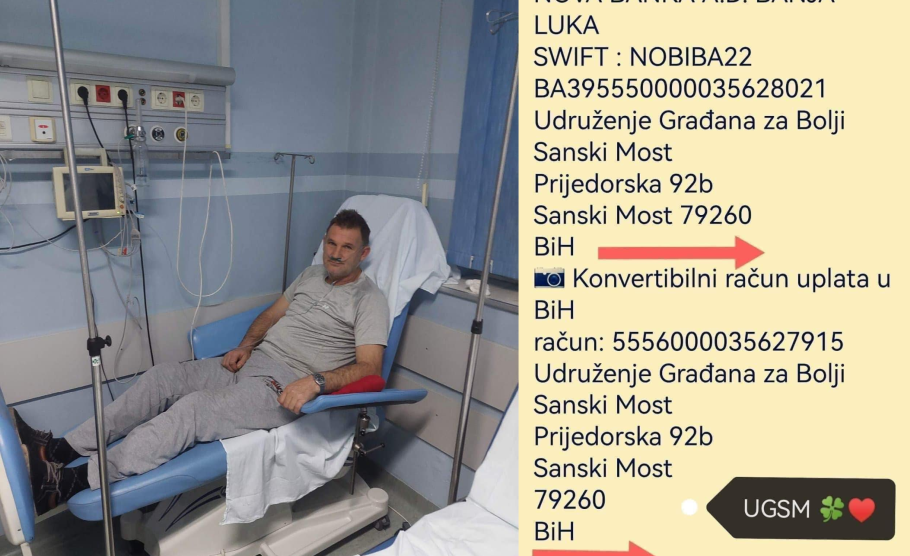 Dobri ljudi! Počinjemo apel za Mirsada Kadrića iz Zenice kojem je potrebna pomoc dobrih ljudi! Ja sam Kadrić Mirsad iz Zenice, izvađen mi je lijevi bubreg na kojem mi je bio tumor i sad godinu dana se borim sa karcinomom, trošio sam pametni lijek u tabletama koje nisu imale neki efekat...