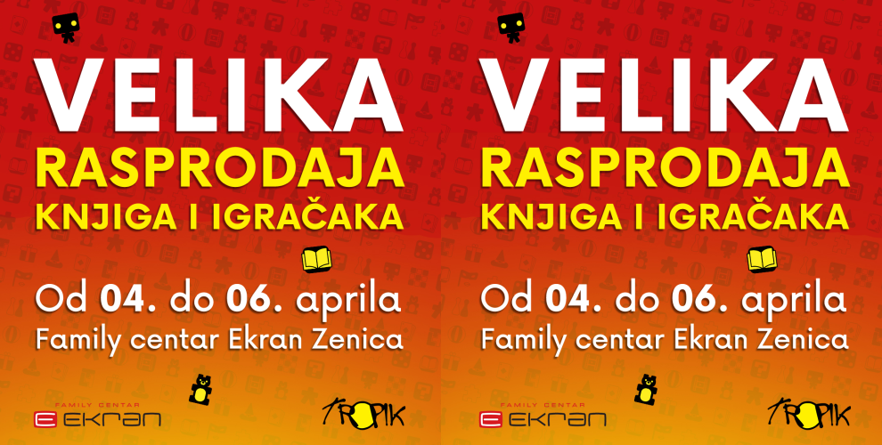 Velika Tropikova rasprodaja knjiga i igračaka u Ekranu Proljeće nam je stiglo, a sa njim i velika Tropikova rasprodaja igračaka, knjiga i slikovnica. Ovo je idealna prilka da za predstojeće praznike poklonite svojim najmilijima omiljenu igračku ili počastite sebe nekom dobrom knjigom...