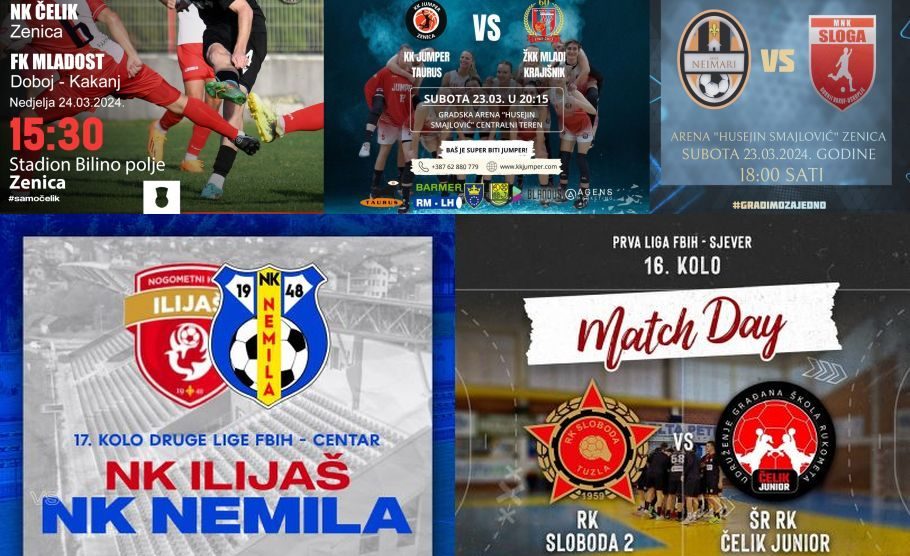 Donosimo Raspored utakmica zeničkih ekipa za ovaj vikend, 23.3. – 24.3.2024.godine, do kojeg smo uspjeli doći preko objavljenih nominacija, Saveza i klubova. SUBOTA, 23.3.2024.godine: 11 sati, Kiseljak: NK Kiseljak – NK Fortuna, (kadeti), 18.kolo Omladinske lige BiH, gr.Centar...