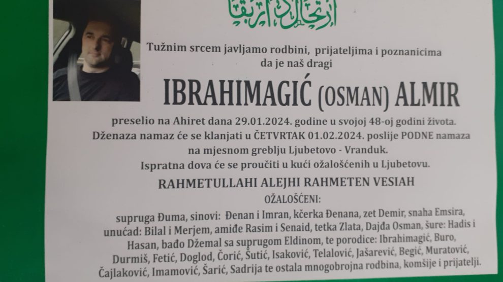 Sutra dženaza Almiru Ibrahimagiću- Nakon teške saobraćajne nesreće u ponedjeljak (29. januar) smrtno je stradao Zeničanin Almir Ibrahimagić. Prema informacijama iz Operativnog centra Ministarstva unutrašnjih poslova Zeničko-dobojskog kantona u nesreći su, kako smo već pisali, učestvovala...