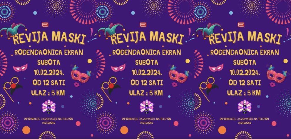REVIJA MASKI Dragi naši, pozivamo vas na najzabavniju reviju pod maskama! Napravite najkreativniju masku ili se maskirajte u princezu, vašeg omiljenog superjunaka – izbor je vaš! Očekuje nas super druženje uz plesne igre, zanimljive koreografije i modnu pistu kojom ćete svi...