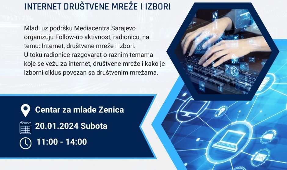 Učenik si 3. ili 4. razreda srednje škole na području Zenice i bliže se tvoji prvi izbori? Mladi uz podršku Mediacentra Sarajevo organizuju Follow-up aktivnost, radionicu, na temu: Internet, društvene mreže i izbori. U toku radionice razgovarat o raznim temama koje se vežu za internet...