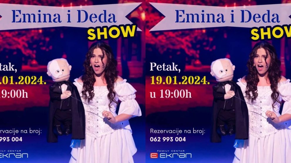 EMINA I DEDA SHOW Naša draga, talentovana Emina, uz pomoć svog raspjevanog Dede, oduševila je žiri i publiku Supertalenta svojim vokalom, glumom i posebnom energijom. Ovaj simpatični duo je konačno tu i spreman je da svojim vrhunskim nastupom osvoji i zeničku publiku! Petak, 19.01.2024...