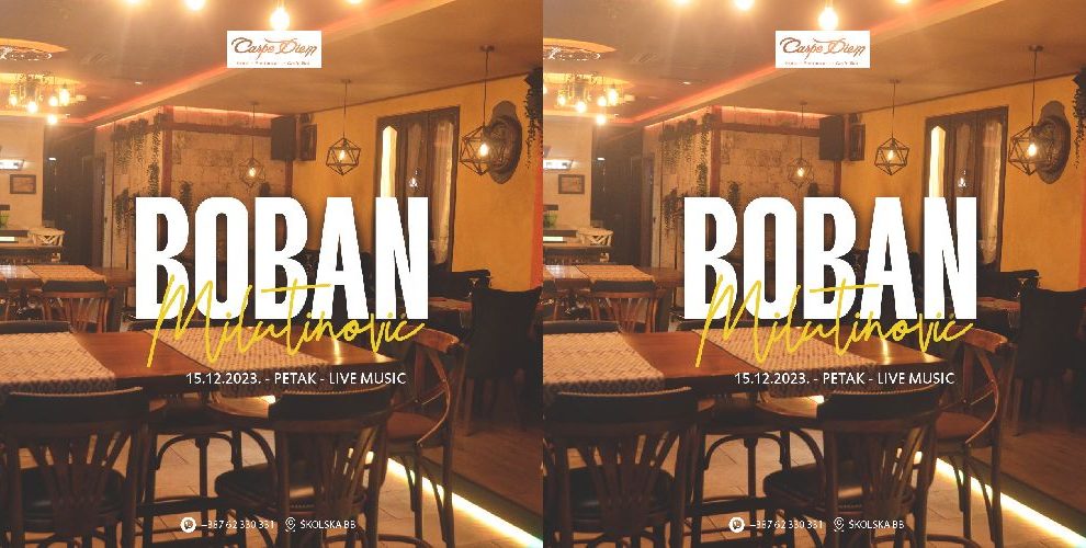 ⚠Uživajte u harmoniji okusa i muzike uživo u restoranu Carpe Diem⚠ Pozivamo vas u petak da se sa nama družite u odličnoj muzičkoj atmosferi kroz koju će nas voditi Boban, a već u subotu vas zabavlja popularni duo Cober i Zuka 15.12.2023. Live music – Boban✔ 16.12.2023. Live music...