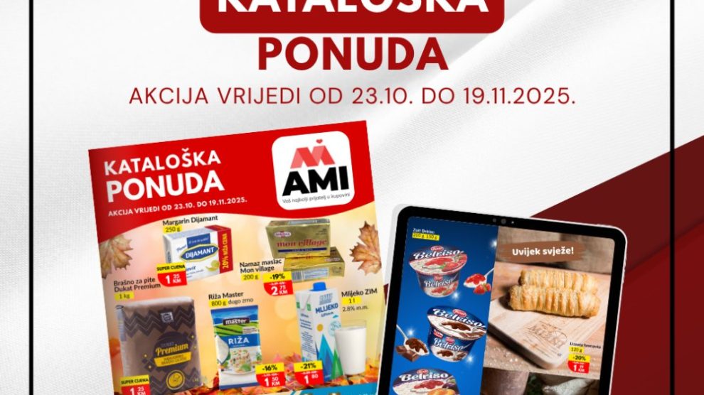 Super cijene očekuju Vas u novom katalogu AMI Marketa Pripremili smo za Vas fantastičnu ponudu koju ne smijete propustiti! Kompletan katalog možete pogledati na www.ami.ba/katalog/ Akcija traje od 23.10. do 19.11.2025. Posjetite AMI Market u Zenici i kupujte povoljnije! �� AMI MARKET...