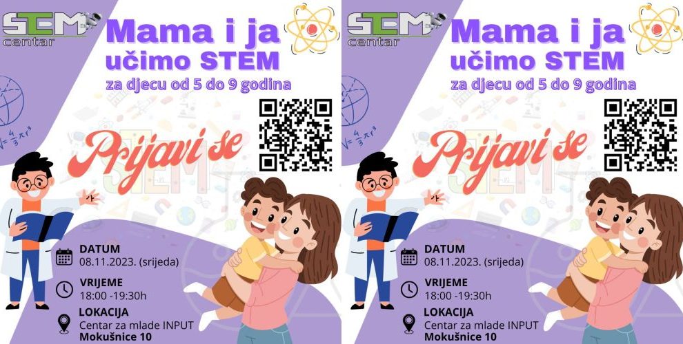 STEM Centar u okviru Međunarodnog dana STEM-a organizuje radionicu ” č ” koja je namjenjena djeci starosne dobi od 5 do 9 godina i njihovima mamama. Pozivamo sve zainteresovane mame da se, zajedno sa svojom djecom, prijave i dođu na radionicu u srijedu 11.08.2023. godine u...