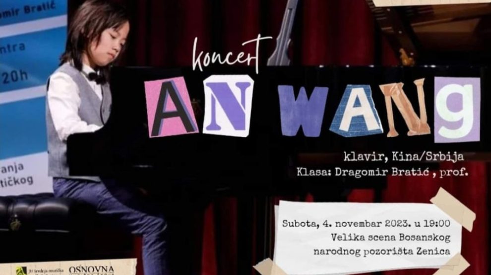 U okviru 74. pozorišne i koncertne sezone Bosanskog narodnog pozorišta Zenica, a u organizaciji Udruženja „Koraci“ – Sekcija Muzički vrtić „Notica“ i Bosanskog narodnog pozorišta Zenica, u subotu, 4. novembra sa početkom u 19 sati će biti upriličen Klavirski koncert An Wang. An Wang...