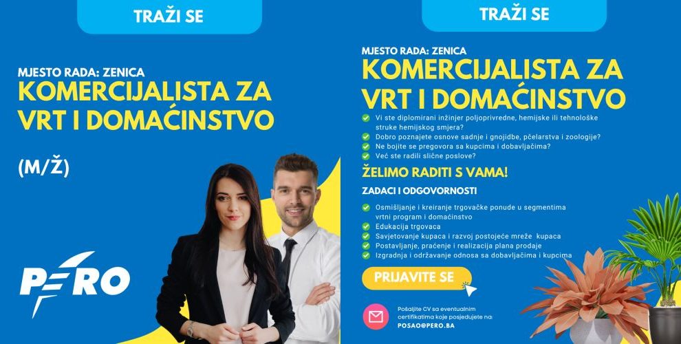 Naš tim trenutno broji preko 120 zaposlenih, a ovog puta smo u potrazi za komercijalistom za vrtni program i domaćinstvo, čija će odgovornost biti da kroz bogaćenje prodajnog asortimana s ciljem privlačenja novih kupaca, kao i širenje postojeće mreže veleprodajnih kupaca, unaprijedi...