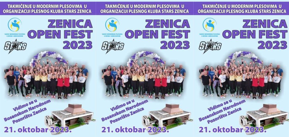 Plesni klub Stars Zenica u saradnji sa Savezom modernih plesova u BiH organizuje treće po redu KV takmičenje “ZENICA OPEN FEST 2023”. Takmičenje se održava u Bosanskom narodnom pozorištu u Zenici (BNP Zenica) u subotu (21. oktobar) u 9h. Ovom prilikom Zenicu će posjetiti oko...