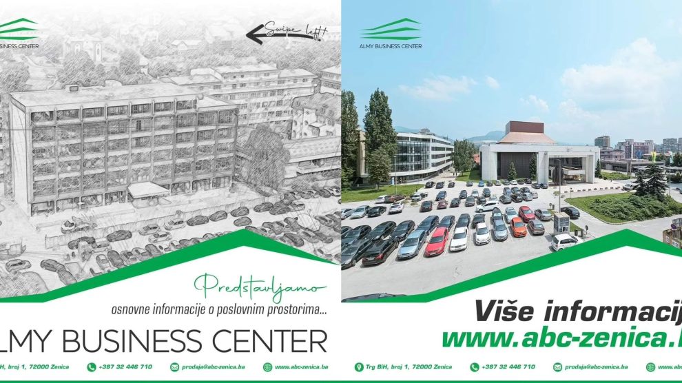 ALMY BUSINESS CENTER Projektnim rješenjem unutar objekta nalazi se 59 poslovnih prostora/kancelarija ukupne kvadrature od 1.900 m2 pojedinačne kvadrature od 15 do 39 m2 ( sa mogućnošću spajanja), namjenski prostor caffe picerije 123 m2, šest slobodnih ostava u podrumu (ukupno 150,66 m2)...
