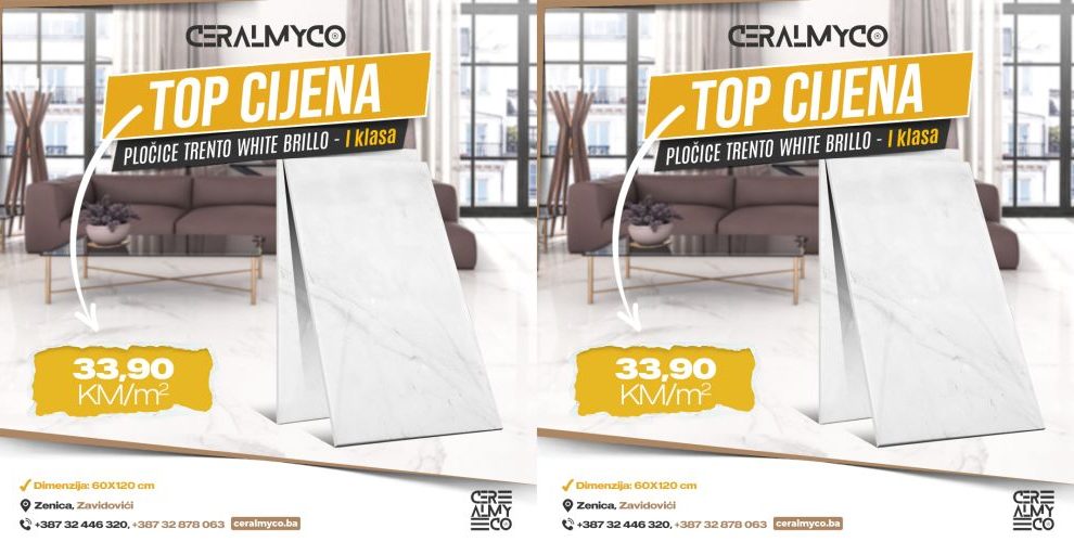 TOP CIJENA keramičkih pločica TRENTO WHITE BRILLO 60X120 cm I klasa Dragi naši kupci, predstavljamo vam akcijsku ponudu vrhunskih keramičkih pločica prve klase koje će vaš dom pretvoriti u pravo remek-djelo. – Prva klasa kvalitete: TRENTO WHITE BRILLO keramičke pločice spadaju u...