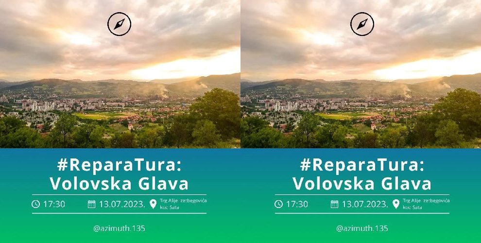 #ReparaTura naš je novi planinarski proizvod koji ima cilj da izvrši reparaciju duše i tijela nakon radnog vremena, dva puta mjesečno, na uzvišenja u rubnim područjima urbanog dijela grada Zenice. U srijedu, 13.07.2023. godine, u 17:30, od Sata na Trgu Alije Izetbegovića idemo na Volovsku...