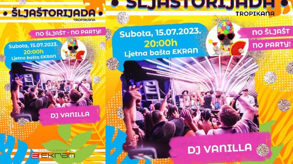ŠLJAŠTORIJADA U EKRANU Dragi naši, pozivamo vas na NAJSJAJNIJu noć sezone – ŠLJAŠTORIJADU! Za dobar provod i “šiz”bez prestanka zadužen je muzički guru DJ VANILLA Jeste li spremni da zapalimo plesni podij?! Subota, 15.07., ljetna bašta Ekran, u 20:00h ⭐️Ulaz je SLOBODAN ⭐️ Vidimo se...