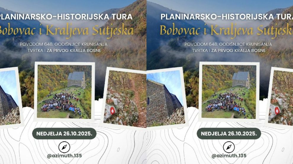 BOBOVAC I KRALJEVA SUTJESKA: 648. GODIŠNJICA KRUNISANJA TVRTKA I ZA PRVOG KRALJA BOSNE – planinarsko-historijska tura · ORGANIZATOR: Azimuth 135 Zenica · SUORGANIZATOR: Klub spasilaca Gorske službe spašavanja Kakanj · PRIJATELJI: općina Kakanj i JU KSC Kakanj · VRIJEME I MJESTO...