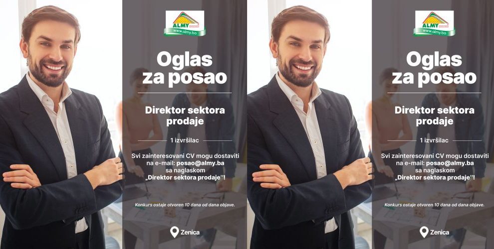 Pozicija: Direktor sektora prodaje Broj izvršilaca: 1 Lokacija: Zenica Uslovi: – VSS, – Minimalno 5 godine iskustva na istim ili sličnim poslovima, – prednost imaju kandidati koji su radili u većim kompanijama, – Kreativnost i inovativnost, – Sposobnost...