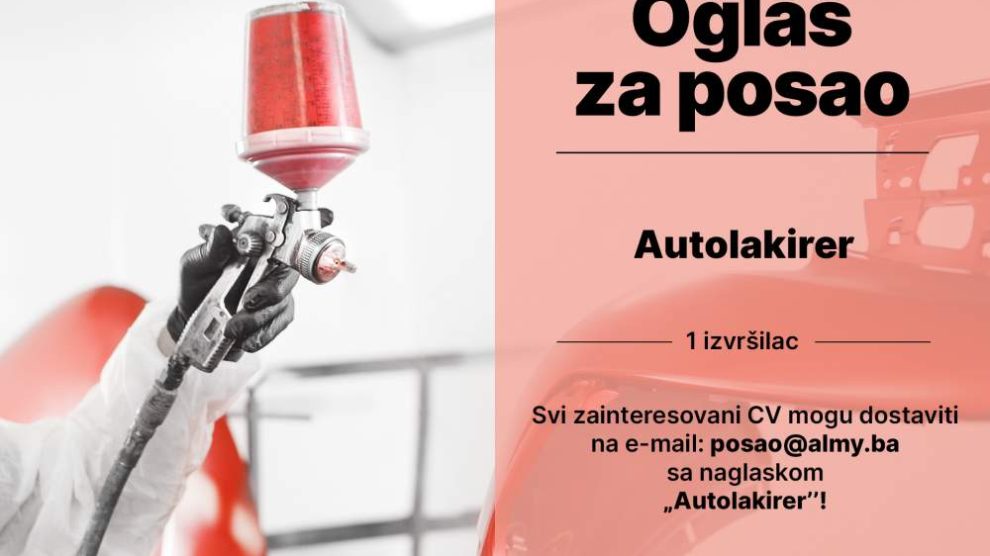 Oglas za posao: Autolakirer – Almy d.o.o. Zenica objavljuje konkurs za prijem u radni odnos: POZICIJA: Autolakirer LOKACIJA: Vranduk-Lipice BROJ IZVRŠILACA: 1 POTREBNE KVALIFIKACIJE: – SSS, – Poželjno iskustvo, – Spremnost na rad u timu. NUDIMO: –...