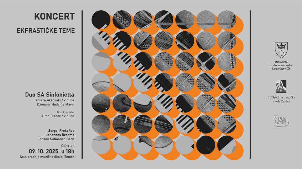 Udruženje „Strings Attached Sinfonietta“ najavljuje koncert u okviru projekta Ekfrastičke teme, koji će biti održan u četvrtak, 9. oktobra 2025. godine, u 18.00 sati, u sali Srednje muzičke škole u Zenici. Ovaj umjetnički ciklus, koji povezuje muziku i književnost kroz refleksiju...