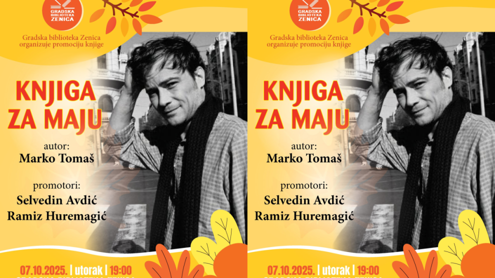 U Gradskoj biblioteci Zenica u utorak, 7. oktobra 2025. godine, bit će održana promocija nove knjige “Knjiga za Maju” poznatog bosanskohercegovačkog književnika Marka Tomaša iz Mostara. Promocija počinje u 19:00 sati, a o knjizi će govoriti Selvedin Avdić i Ramiz Huremagić, književnici i...