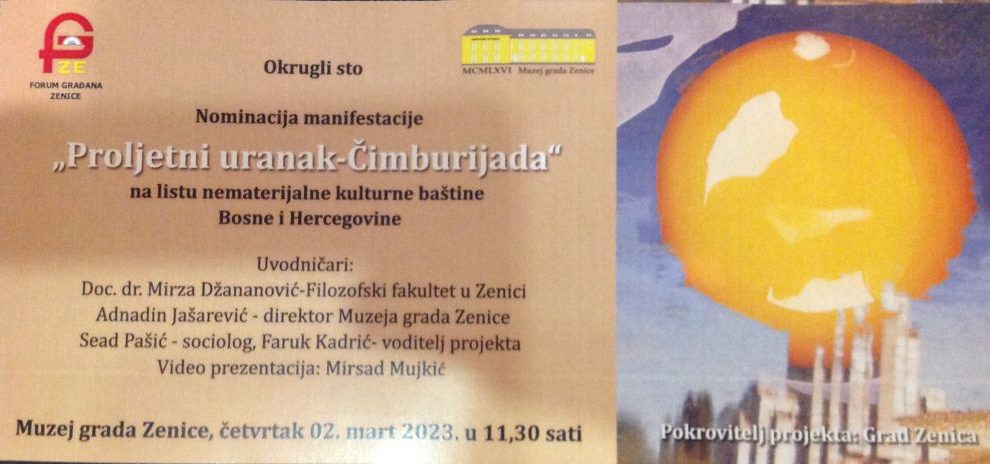 Da sa podsjetimo na nekoliko uranaka pa i ljudi koji su dali doprinos da se danas održi Okrugli sto…. 1967.g. Mjesto događaja bašta Saliha Burekovića. Organizator vesele družine Zeničana Hašim Vojvodić. Društvo, uz pjesmu i priču dočekuje prvi dan proljeća uz nezaobilazni čimbur...