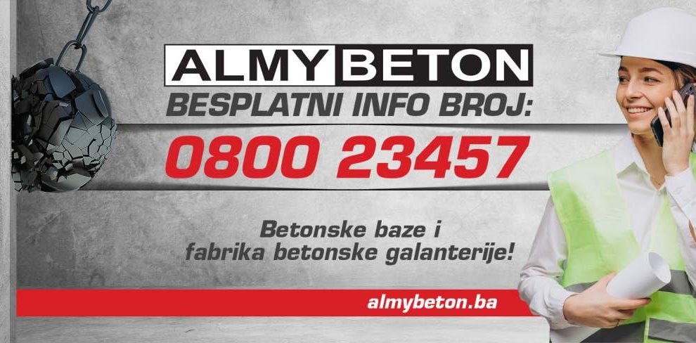 Poštovani prijatelji i kupci, obavještavamo vas da je u funkciji besplatan info broj za ALMYBETON® Sve informacije i obavijesti za betonske baze Zenica, Sarajevo i Zavidovići kao i za fabriku betonske galanterije od sada možete dobiti na besplatan telefon 0800 23457 a u svrhu neprestanog...