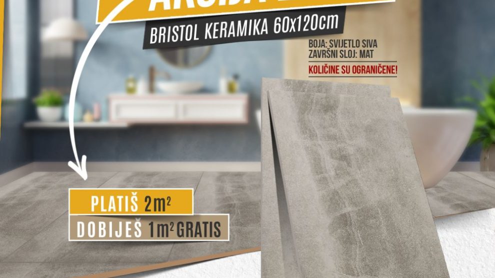 Za svaka kupljena 2m2 pločica BRISTOL 60X120cm, 1m2 dajemo GRATIS!