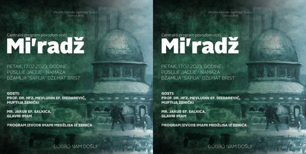 Obavještavamo cijenjene džematlije da je u petak, 17. februara 2023. godine, 27. noć mjeseca redžeba, Lejletu-l-miradž i Dan Vakifa. Lejletu-l-miradž nas podsjeća na poslanika Muhameda, a.s., i njegov miradž u nebeske sfere, ali i na dolazak predstojećeg ramazana. Tim povodom će Medžlis...
