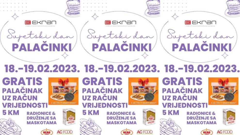 Slavimo svjetski Dan Palačinki !!!😋🥞 U danima vikenda koji nam dolaze, u terminu od 12 do 14h, uz račun od najmanje 5 KM imate pravo na 1 gratis palačinku od ukusne MAZE, a uz to smo Vam u našoj rođendaonici pripremili izvanredne radionice i druženje sa maskotama MAZOM i...