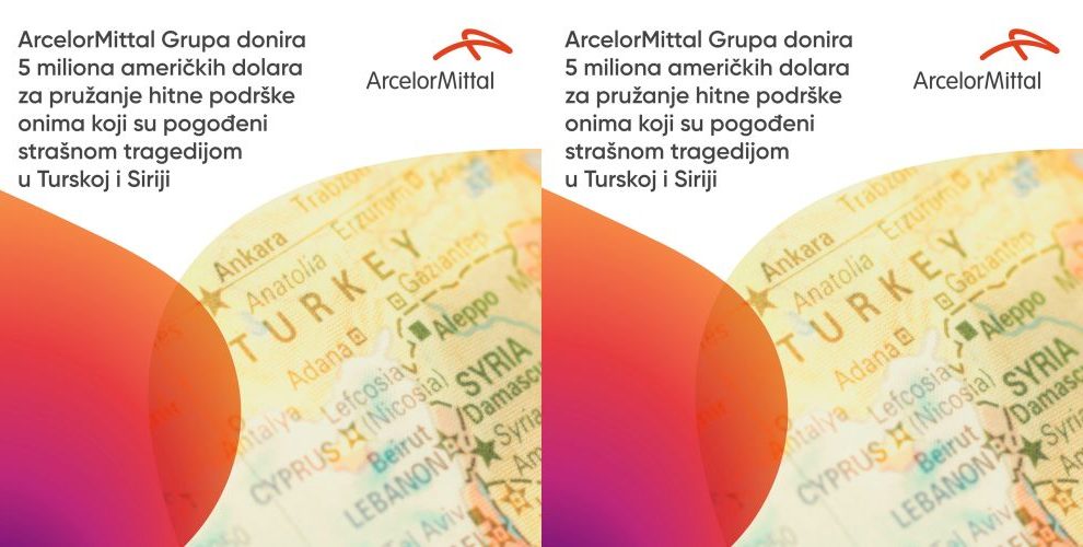 Naše misli i molitve su sa našim kolegama u Turskoj i svima koji su pogođeni prošlosedmičnim razornim zemljotresima u Turskoj i Siriji. ArcelorMittal Grupa donira 5 miliona američkih dolara (US$) za podršku, pomoć i oporavak, od kojih je prvih 2,5 miliona US$ već predano DEC-u (The...