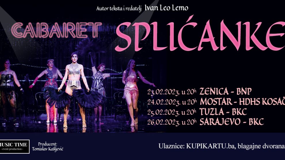 Popularne „Splićanke“ u februaru ove godine kreću na bh. turneju. 23. februara nastupit će u BNP-u u Zenici, 24. februara u H.D. S.Kosača u Mostaru, 25. februara u BKC-u u Tuzli, 26. februara u BKC-u u Sarajevu. Predstava će u svim gradovima početi u 20 sati, a karte možete kupiti preko...