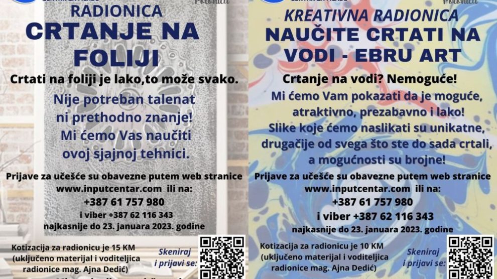 Radionica Crtanje na foliji Crtanje na foliji je neobična i izuzetno atraktivna tehnika koja će Vam omogućiti da zaplovite u svijet kreativnosti u kojem nije potrebno da imate predznanje ili talenat. Ovo je vještina koju mogu naučiti SVI, a mi Vam to omogućujemo učešćem na ovoj radionici...