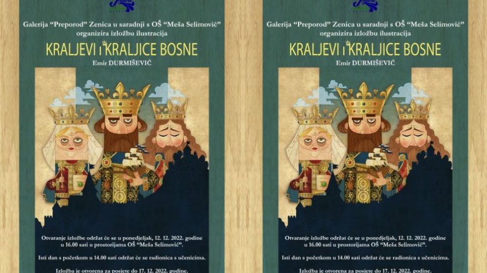 Galerija“ Preporod“ Zenica u saradnji sa Osnovnom školom „Meša Selimović“ postavlja Izložbu ilustracija „Kraljevi i kraljice Bosne“ ,autora Emira Durmiševića iz Sarajeva. Koncept artist, ilustrator i animator Emir Durmišević iz Sarajeva , autor je ilustrovane knjige “Kraljevi i kraljice...
