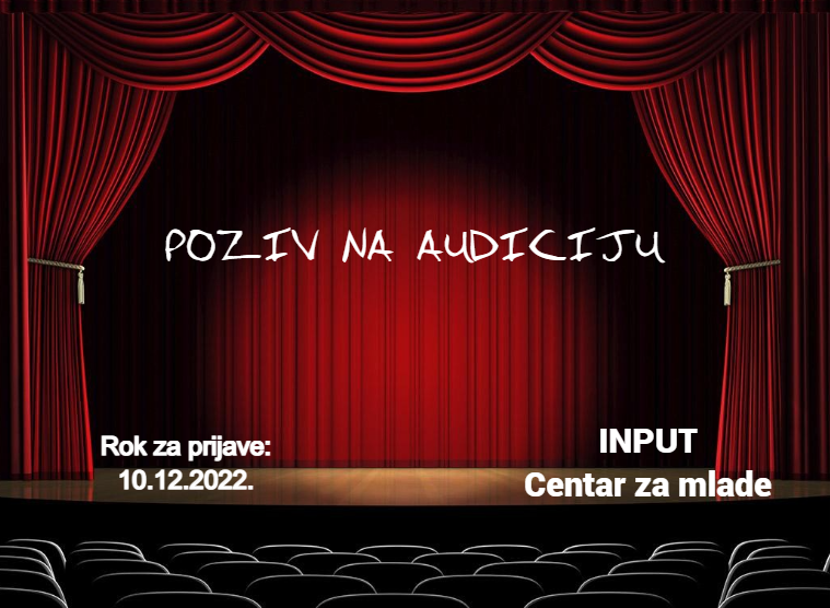 Želite li glumiti u predstavi? Ovo je Vaša prilika! Prijavite se! Centar za mlade INPUT u okviru ekološkog projekta realizuje predstavu, te poziva sve zainteresovane srednjoškolce od prvog do četvrtog razreda srednje škole sa područja grada Zenice da se prijave na audiciju. Predstava u...