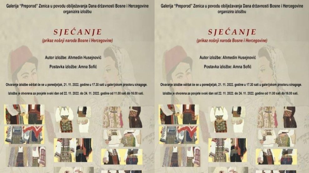 Galerija „Preporod“ Zenica u povodu obilježavanja Dana državnosti postavlja Izložbu „Sjećanje“. Radi se o prikazu nošnji naroda Bosne i Hercegovine. Nošnje će biti prikazane u izvornom obliku na lutkama i radi se o replikama nošnji i jednom dijelu orginalnih nošnji.Sve nošnje su rađene od...