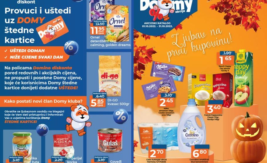 ‼️ DOMY AKCIJA‼️ 🛍🛒🐻🌺🐻🌺🛒🛍 Dragi naši, predstavljamo vam Domy akciju za mjesec oktobar. Najbolja ponuda i najbolje cijene, prilika koja se ne propušta! Čekamo vas na adresi Poslovni centar 96, u...