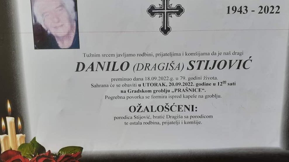 Na Gradskom groblju Prašnice danas je sahranjen Danilo Stijović, koji je u nedjelju preminuo u 79. godini života. Stijović je u bivšoj Jugoslaviji bio jedan od najpoznatijih advokata, a kolege sudije, tužioci i advokati, koji su s njim dijelili sudnicu, znaju da se prihvatao najtežih i...