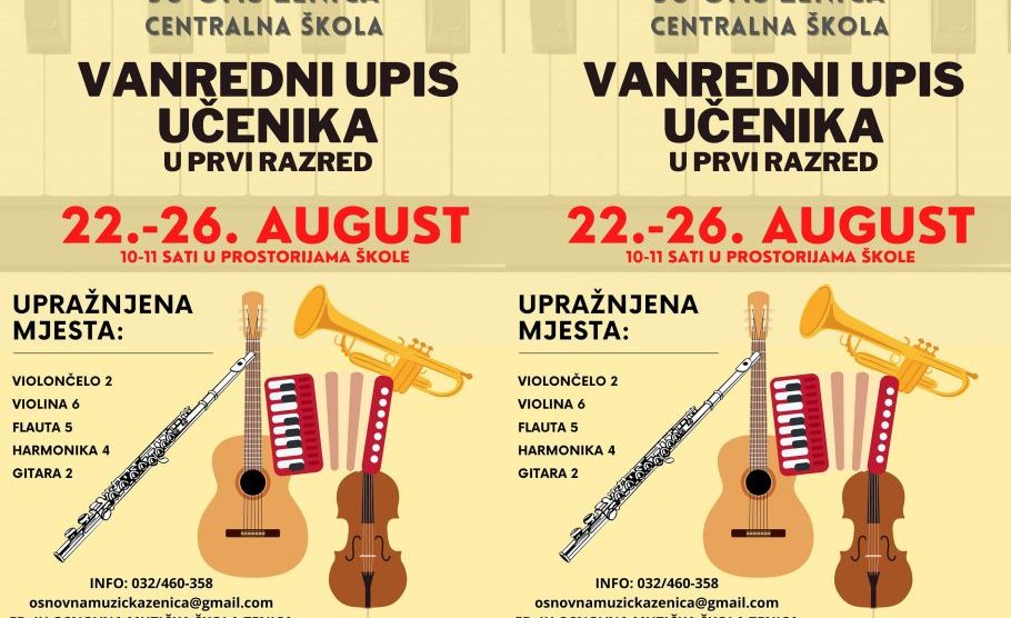 ❗VANREDNI UPIS UČENIKA U I RAZRED❗ U periodu od 22.08.-26.08.2022. u terminu od 10-11h vršit će se upis učenika u I razred na upražnjena mjesta, za šk. 2022/2023. godinu. Prijemnom ispitu učenika mogu pristupiti učenici koji u redovnoj školi upisuju IV razred. Potrebna...