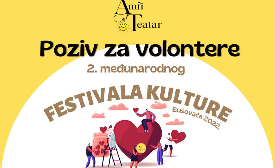 Poziv za volontere: Festival kulture u Busovači- Poziv za volontere 2. Festivala kulture u Busovači AmfiTeatar Busovača poziva mlade od 15 – 30 godina da postanu dio kreativnog, volonterskog tima drugog međunarodnog Festivala kulture, Busovača, 2022. Volonteri Festivala kulture će...