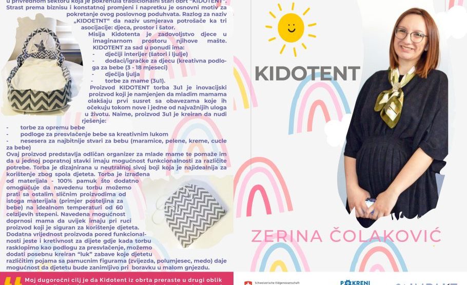 ️ Današnja uspješna priča dolazi iz Zenice. Kidotent je osnovala Zerina Muco Čolaković, diplomirana ekonomistica sa višegodišnjim iskustvom u privrednom sektoru. Prvi proizvod koji su plasirali bio je šator za djecu, odakle je potekao i sam naziv firme Kidotent , a pored šatora u...