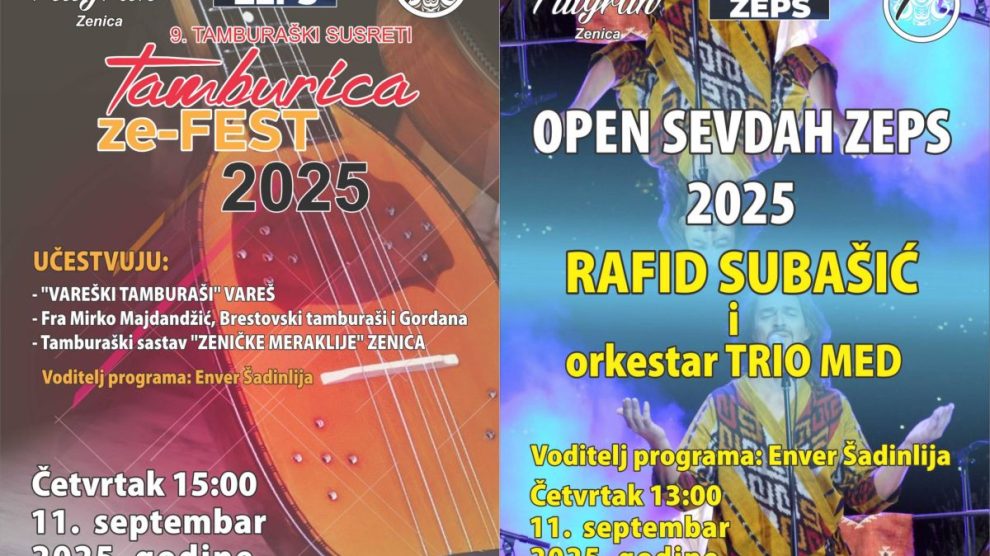 Gradsko-umjetničko društvo “FILIGRAN”-Zenica 11.09.2025.godine (četvrtak) organizuje dvije muzičke manifestacije koje će biti organizovane na sajmu “ZEPS”. Prva manifestacija pod nazivom “OPEN SEVDAH ZEPS 2025” koja se organizuje po prvi put će biti...
