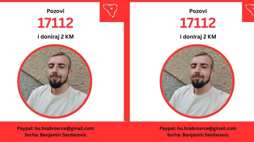 Pred nama je jedan od najtežih apela koje naše Udruženje pokreće – apel za dijete našeg grada, našeg Zeničanina, mladića iz komšiluka – Benjamina Serdarevića (26). Benjamin je donedavno živio kao i svaki drugi mladić – imao snove, planove i vjerovao u budućnost. A onda je stigla dijagnoza...