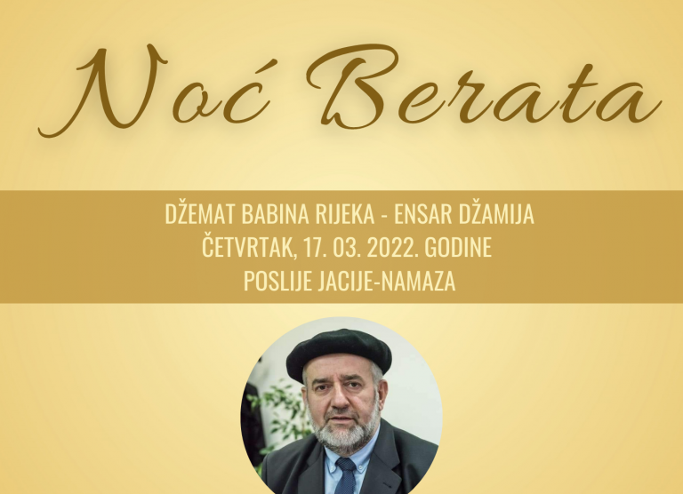 Mubarek noć Lejletu-l-berat, po Takvimu Rijaseta Islamske zajednice u Bosni i Hercegovini za 2022. godinu nastupa u akšam, u četvrtak, 17. marta, i vijesnik je nadolazećeg mjeseca posta, ramazana. Mubarek noći su dodatno ohrabrenje da vjernici svoje najglasnije i najskrovitije želje...