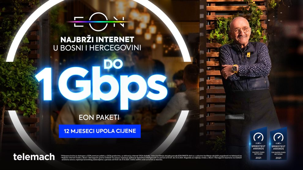Telemach BH donosi nove brzine interneta u EON paketima – svi postojeći i novi korisnici moći će surfati uz brzinu do 1 Gbps- Telemach BH od 15. marta donosi veće brzine interneta (download i upload) postojećim i novim korisnicima svih EON i EON DUO paketa uz zadržavanje postojećih cijena...