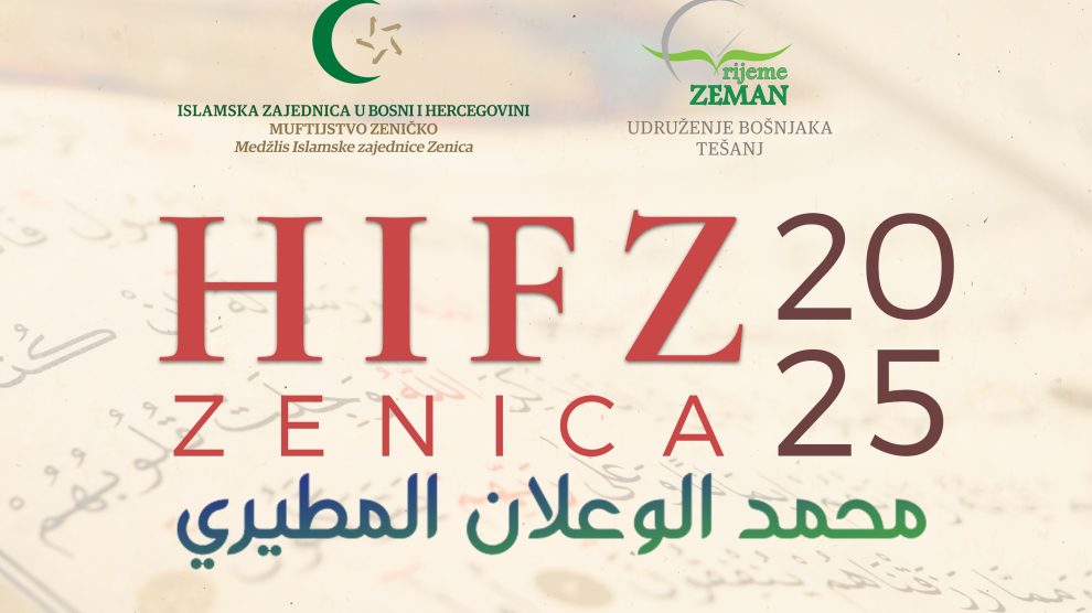 Medžlis Islamske zajednice Zenica i Udruženje Bošnjaka “Vrijeme-Zeman” Tešanj, organizuju nagradno takmičenje u učenju Kur’ana napamet – Hifz Zenica 2025. Takmičenje će biti održano 20. decembra 2025. godine a svečano proglašenje pobjednika 27. decembra 2025. godine. Takmičenje se...