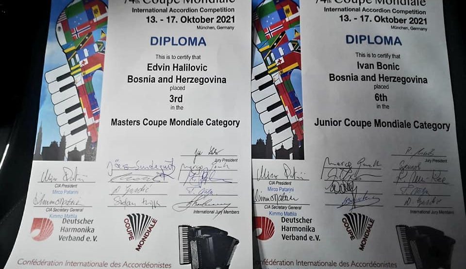 Sjajni nastupi učenika Srednje Muzičke Škole Zenica na Svjetskom takmičenju harmonike- Na 74. Svjetskom takmičenju harmonike, održanom u Minhenu od 13. – 17. 10. 2021. godine naš učenik, Ivan Bonić, klasa prof. Emina Berbić osvojio je ŠESTO mjesto u kategoriji Junior classic! Na...